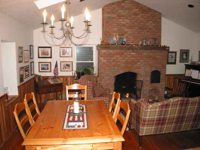 dining room features the warmth of an English Rumford fireplace and a bread oven.