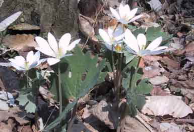 us, how cut Bloodroot “bleeds” reddish juice. Bloodroot was used by the